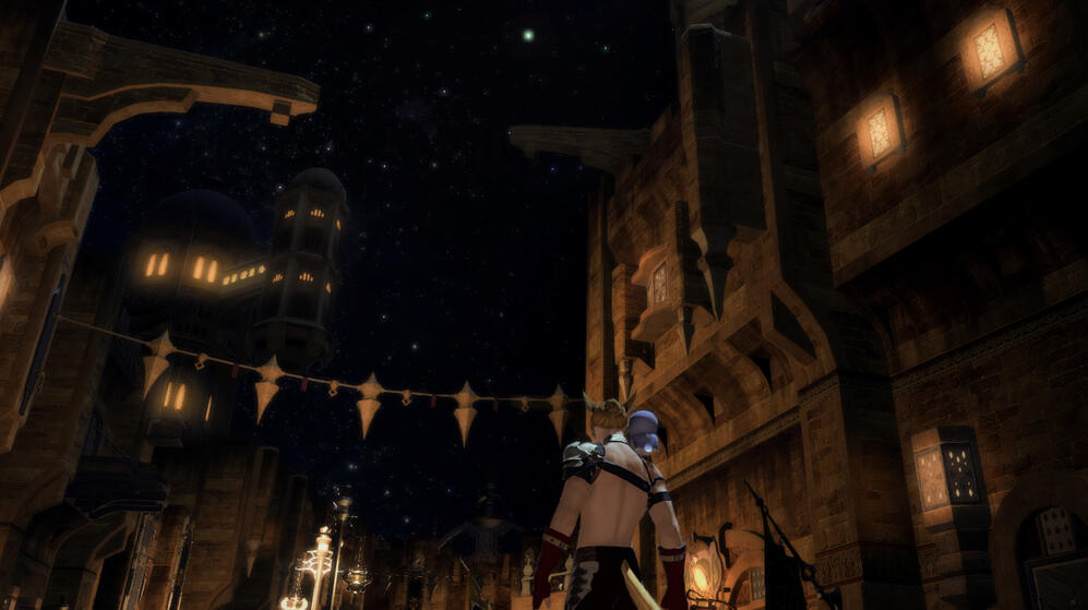 He thinks of the Pugilist guild back in Ul'dah. Hamon acts as his father figure, Chuchuto as his elder sister, and Rurukata as his elder brother.