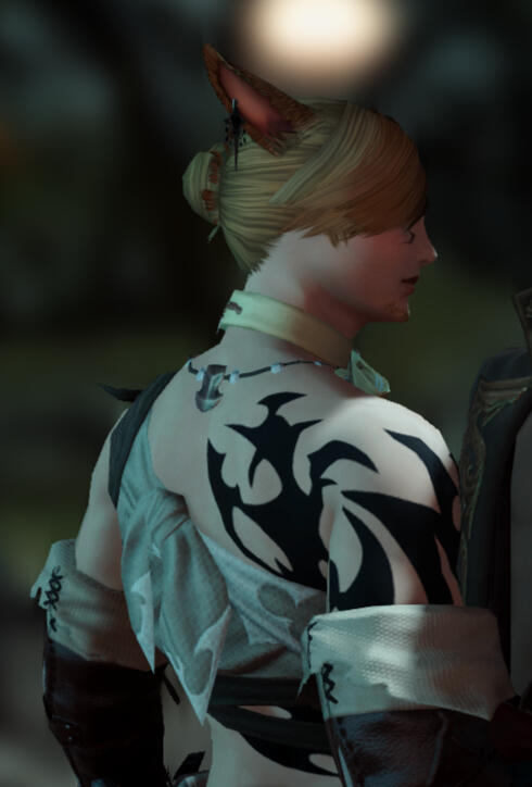 The item that is of greatest significance to him is a thick yellow ribbon. On his first nameday with the Pugilist Guild, he was gifted the bow as a joke. It is yellow like his hair, and the ribbon mocks his Miqo'te descent. Despite this, it was the first gift Sanji has ever received from anyone, and he treasures it with his life.
